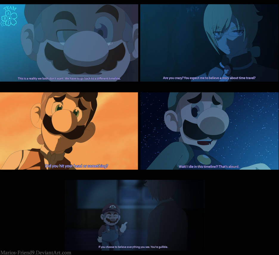 Le fangame possède une histoire très bien travaillée, mettant en scène des personnalités plaisantes, déplaisantes ou touchantes. Certains personnages peuvent être horrifiques, tandis que d’autres peuvent sembler héroïques ; tout dépend du joueur. Mais ce qui est sûr, c’est que TOUS sont bien écrits et appartiennent à Ari, sauf Mario, Luigi et Peach. Ils nous mettent en émoi et transmettent à la fois tristesse et sympathie.